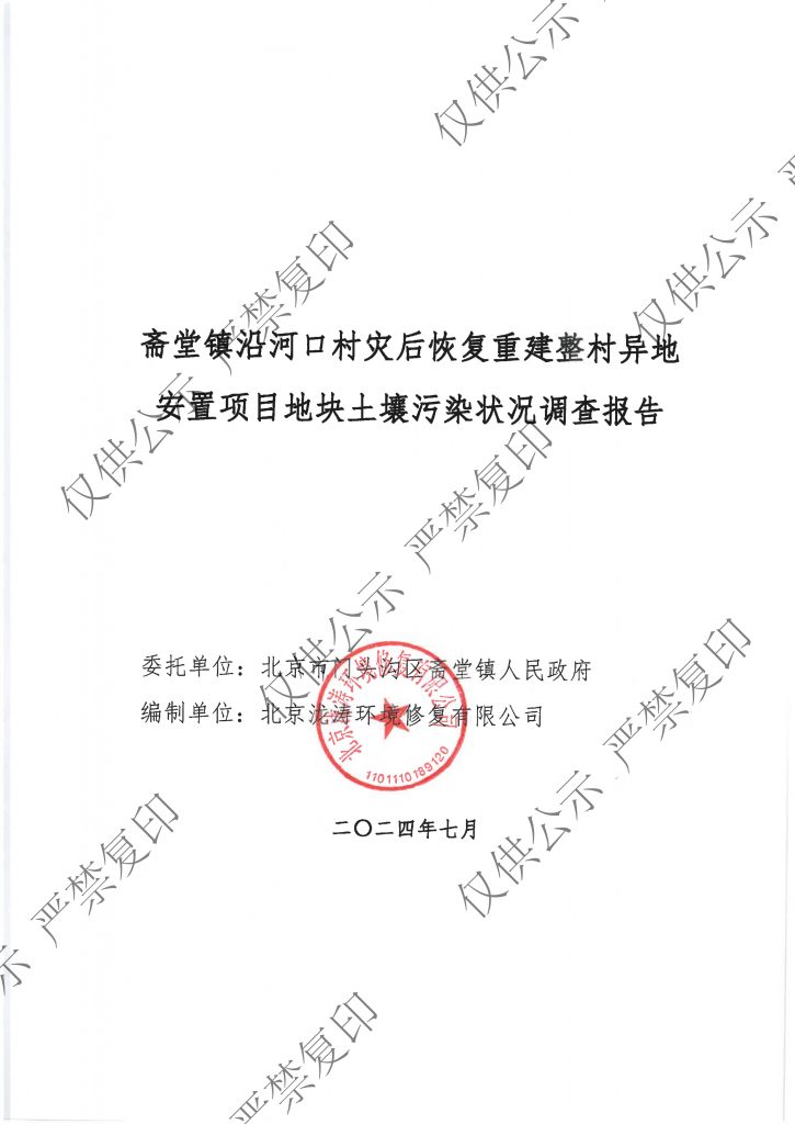 根據(jù)《關(guān)于齋堂鎮(zhèn)沿河口村災(zāi)后恢復(fù)重建整村異地安置項(xiàng)目“多規(guī)合一”協(xié)同平臺(tái)初審意見(jiàn)的函》(京規(guī)自(門(mén))初審函[2024]0004號(hào))中涉及用地安全的要求,項(xiàng)目應(yīng)當(dāng)開(kāi)展土壤污染現(xiàn)狀調(diào)查,并將調(diào)查結(jié)果報(bào)送至區(qū)生態(tài)環(huán)境局。